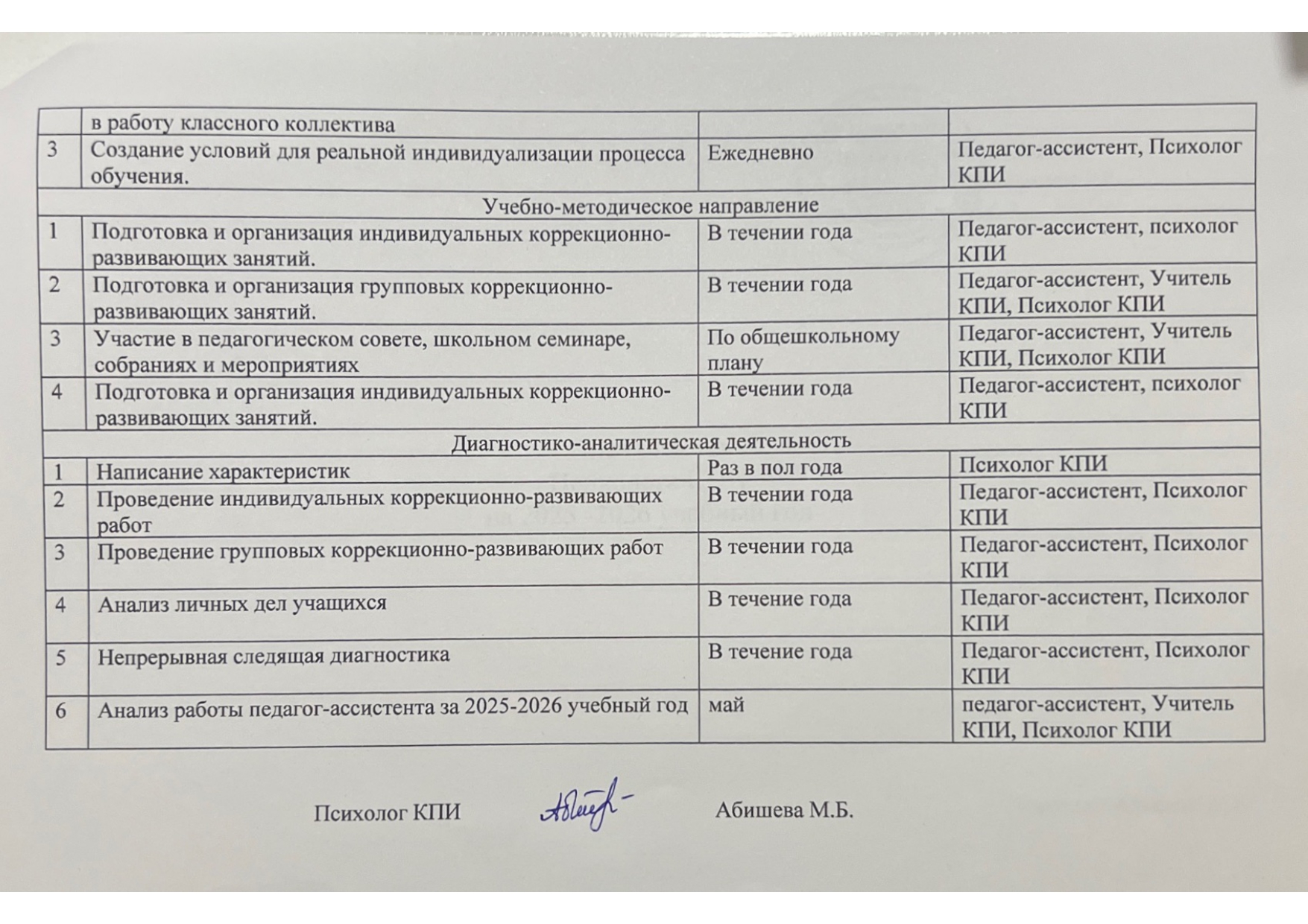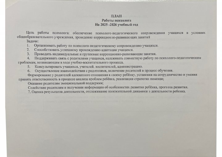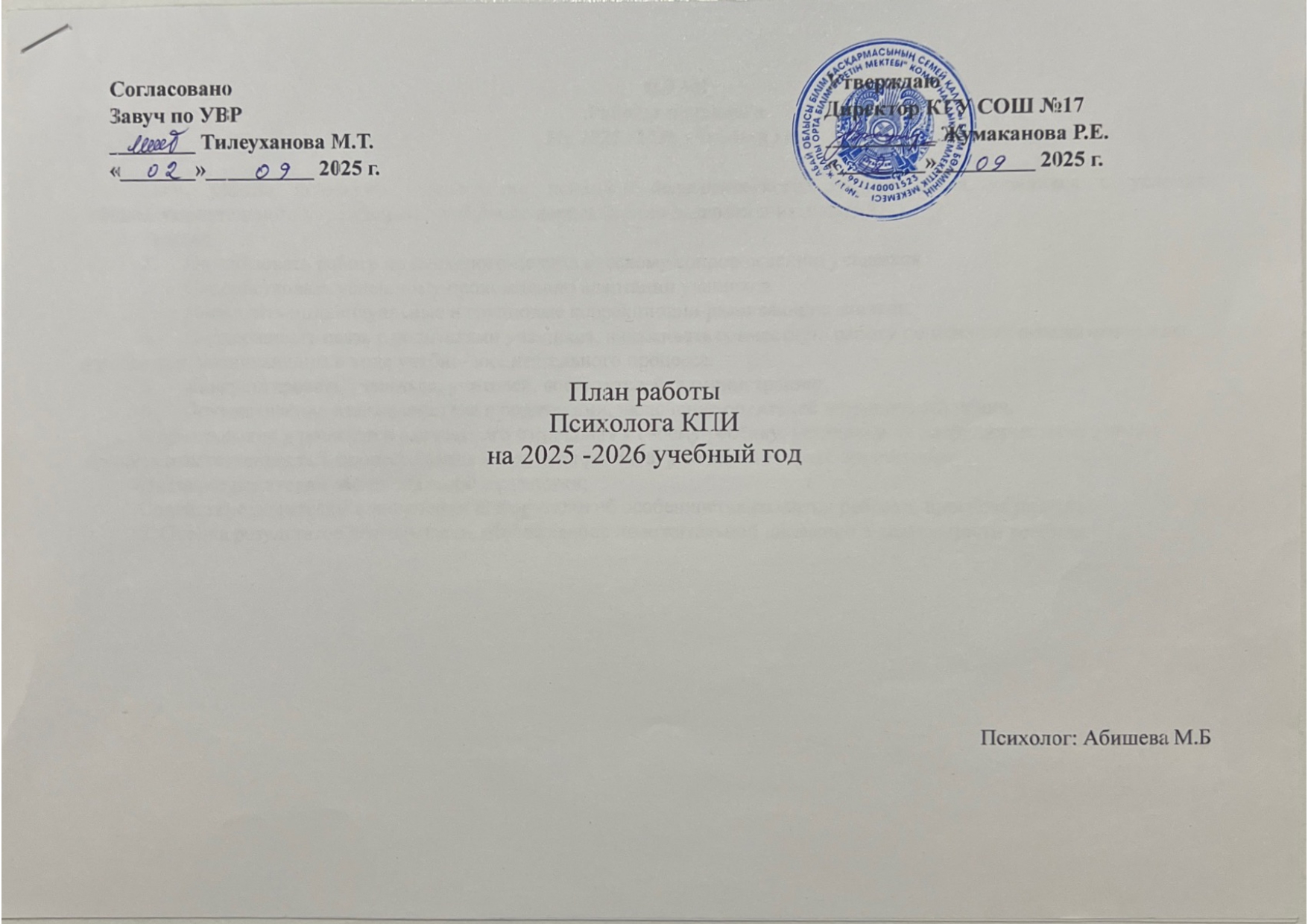 Годовой план психолога КПИ 2025-2026г » КГУ СОШ № 17