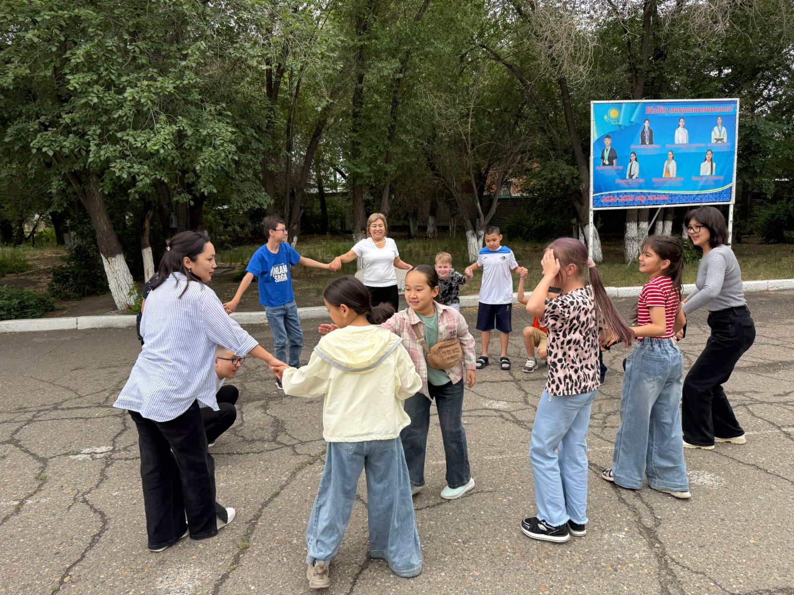 Мәдени іс-шарадан кейін лагерь оқушылары таза ауада серуендеп, қозғалмалы ойындар ойнады. Балалар спорттық эстафеталарға қатысып, командалық ойындар арқылы достық пен ұйымшылдықты нығайтты.